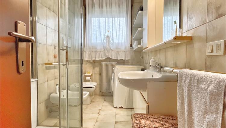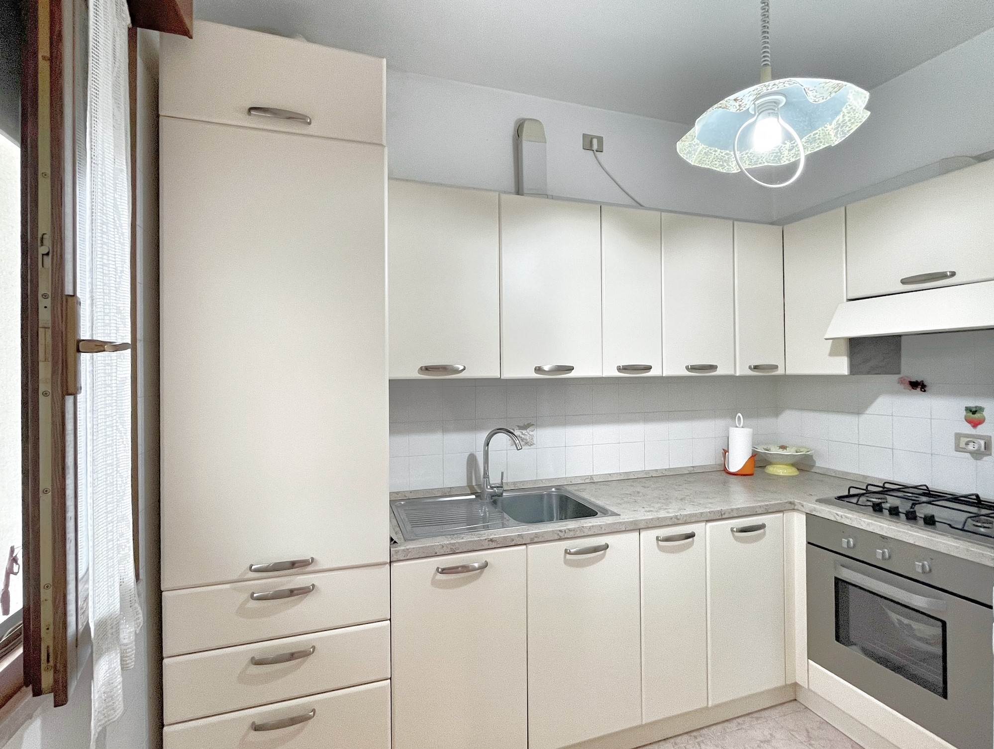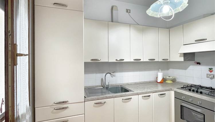 In tranquilla e centrale zona residenziale, appartamento al secondo (ultimo) piano. Zona giorno esposta a sud composta da ingresso, soggiorno, cucina e terrazza, zona notte composta da disimpegno, camera matrimoniale, camera singola e terrazza. Garage al piano interrato. Vano scala di sole quattro unità, giardino condominiale.