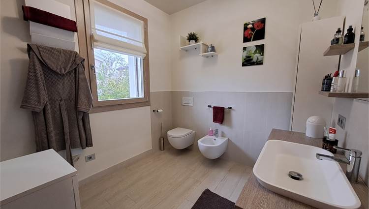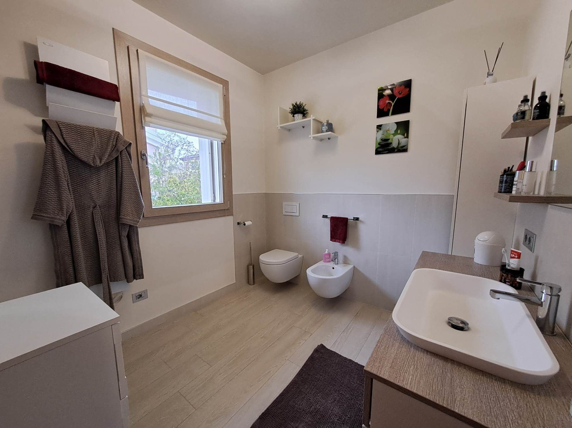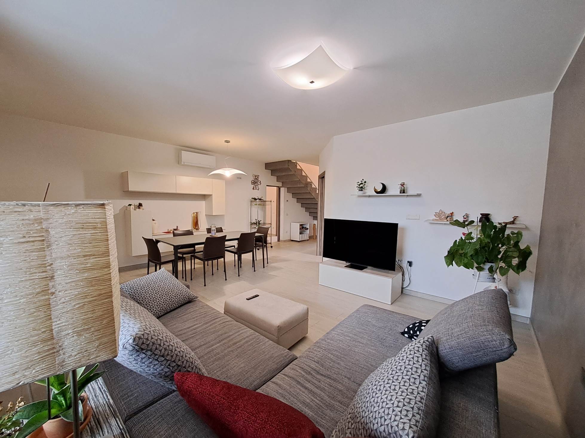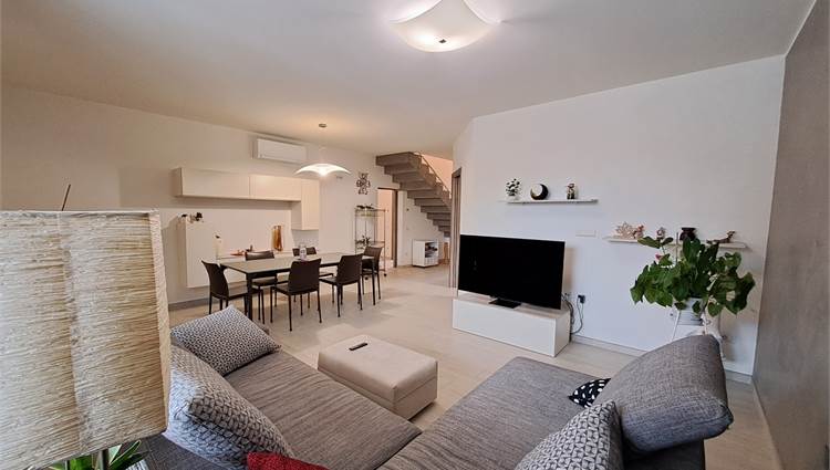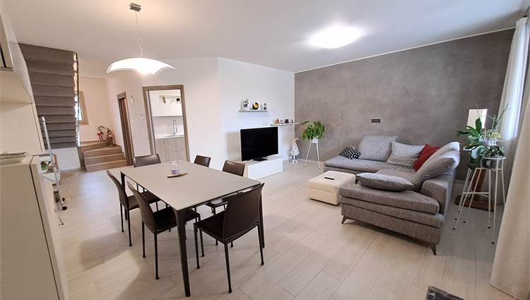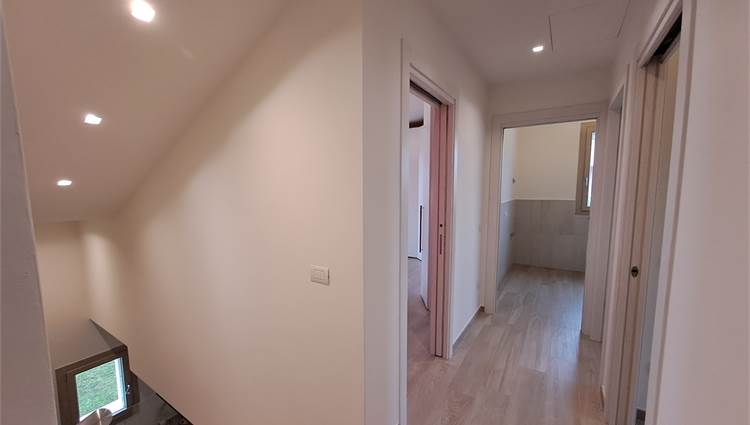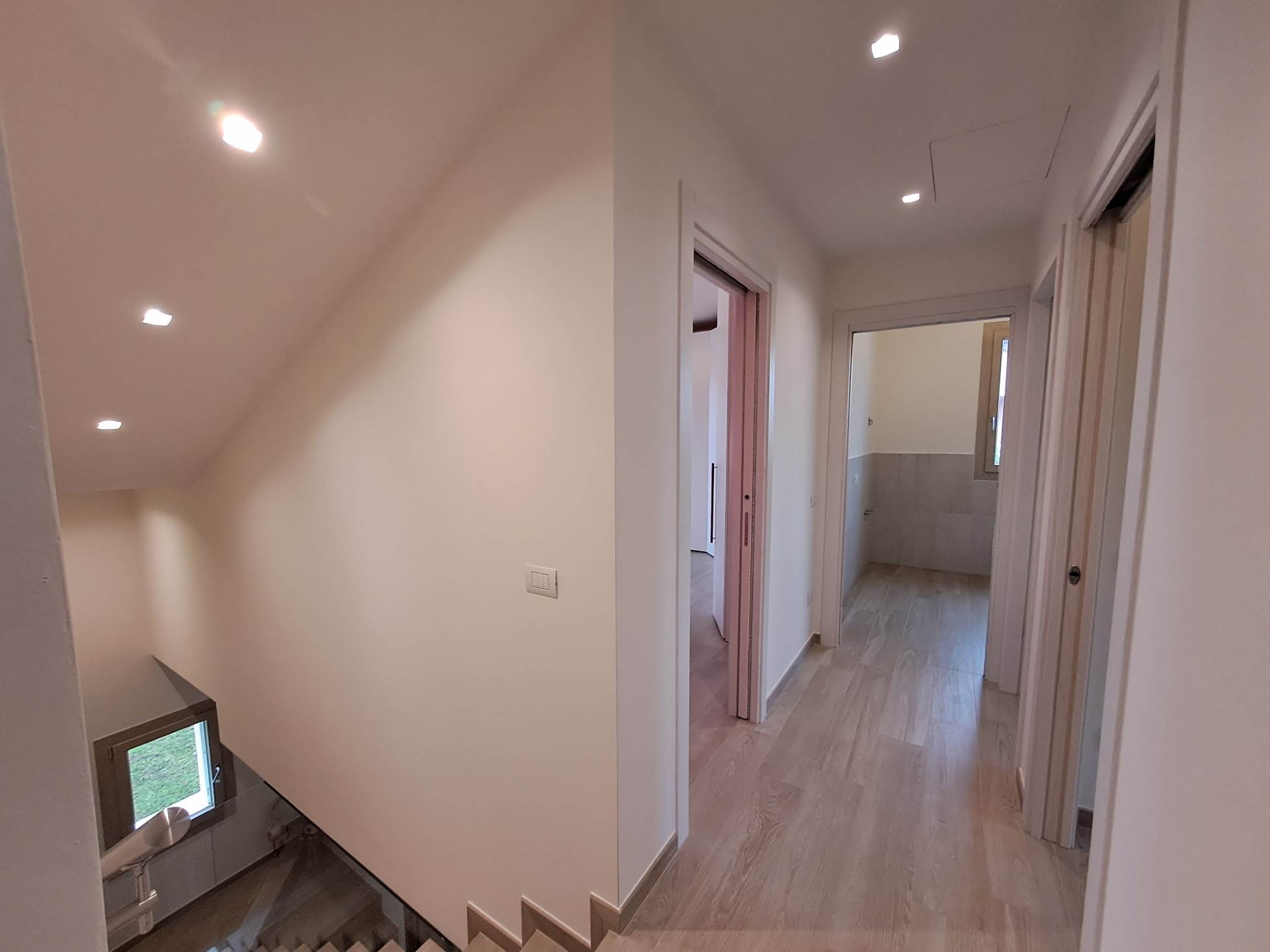 Recentissima porzione di bifamiliare superiore al nuovo per finiture e dimensioni, in perfette condizioni. Al piano terra, attraverso il portico, ingresso su grande soggiorno con cucina separata, bagno, lavanderia, ripostiglio e garage. Al piano primo quattro camere (due di oltre 20 mq) e bagno. Consegna ottobre 2026
