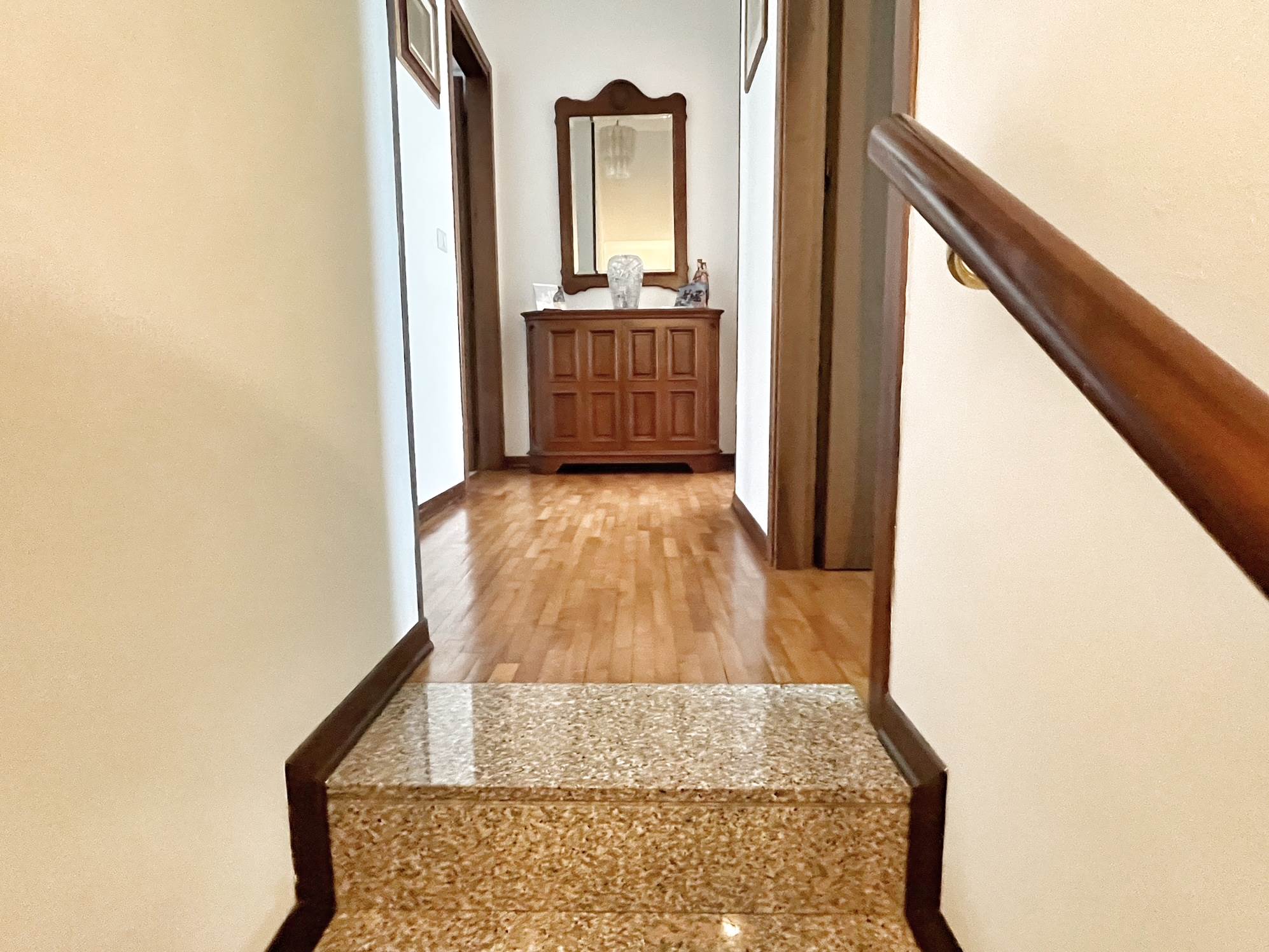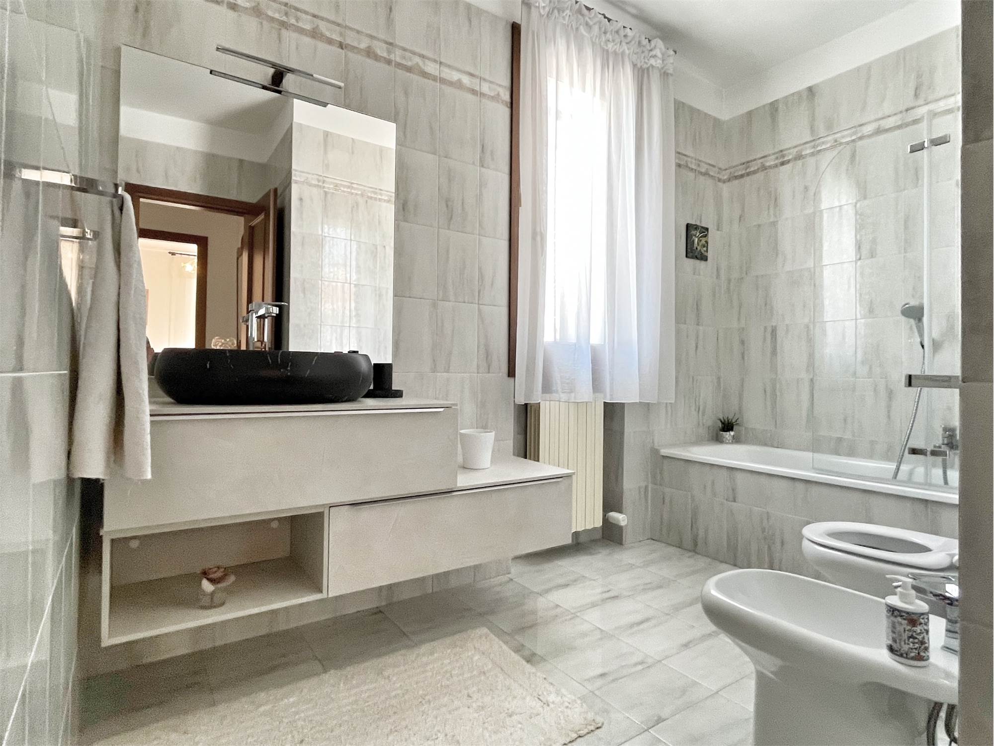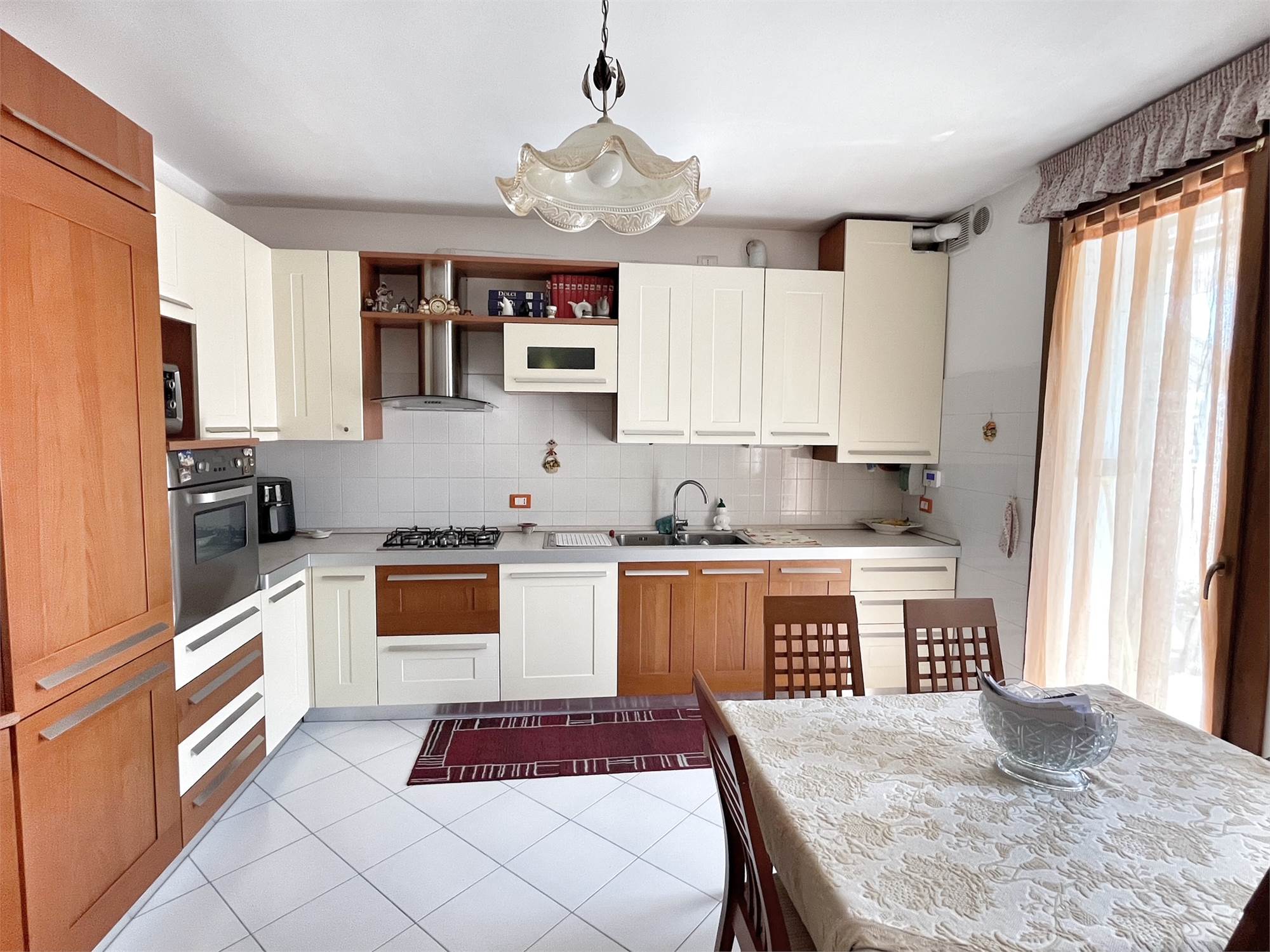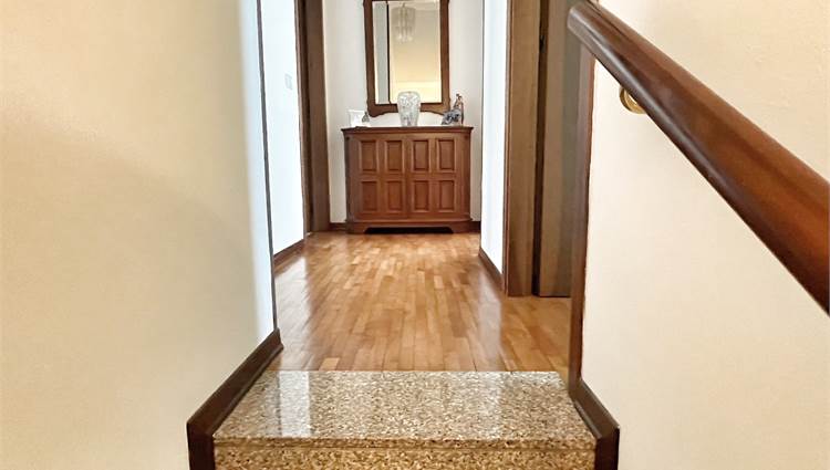 Ubicata all'interno di un complesso residenziale in centro paese. Molto luminosa in quanto esposta a est ed ovest. Al piano rialzato entrata da portico, soggiorno, grande cucina di 17 mq con uscita in terrazza abitabile, bagno finestrato rifatto nel 2024 e ripostiglio lavanderia. Al piano superiore camera matrimoniale con bagno padronale, camera doppia di quasi 13 mq, camera singola, ulteriore bagno e due poggioli. Al piano seminterrato garage di oltre 30 mq, taverna finestrata con camino e cantina. Di recente è stato fatto un intervento di riqualificazione energetica, con cappotto termico da 14 cm, serramenti nuovi in pvc con triplice vetro, panelli fotovoltaici di 6 kw con batterie di accumulo da 20 kw, colonnina per ricarica auto elettrica e impianto di riscaldamento ibrido con pompa di calore e caldaia a condensazione.