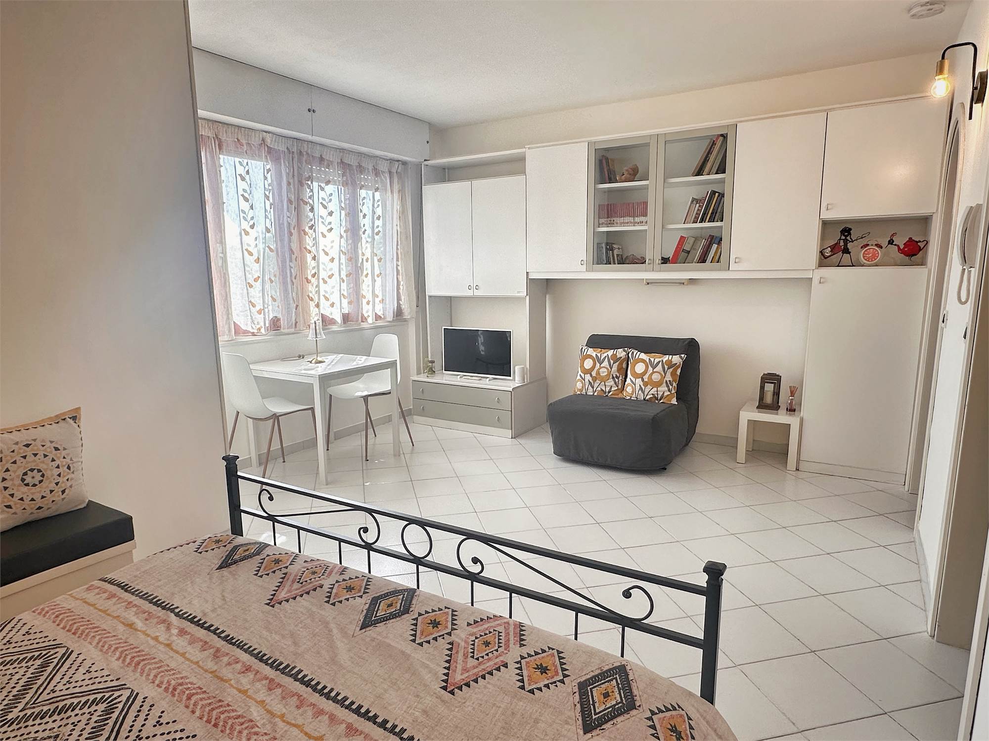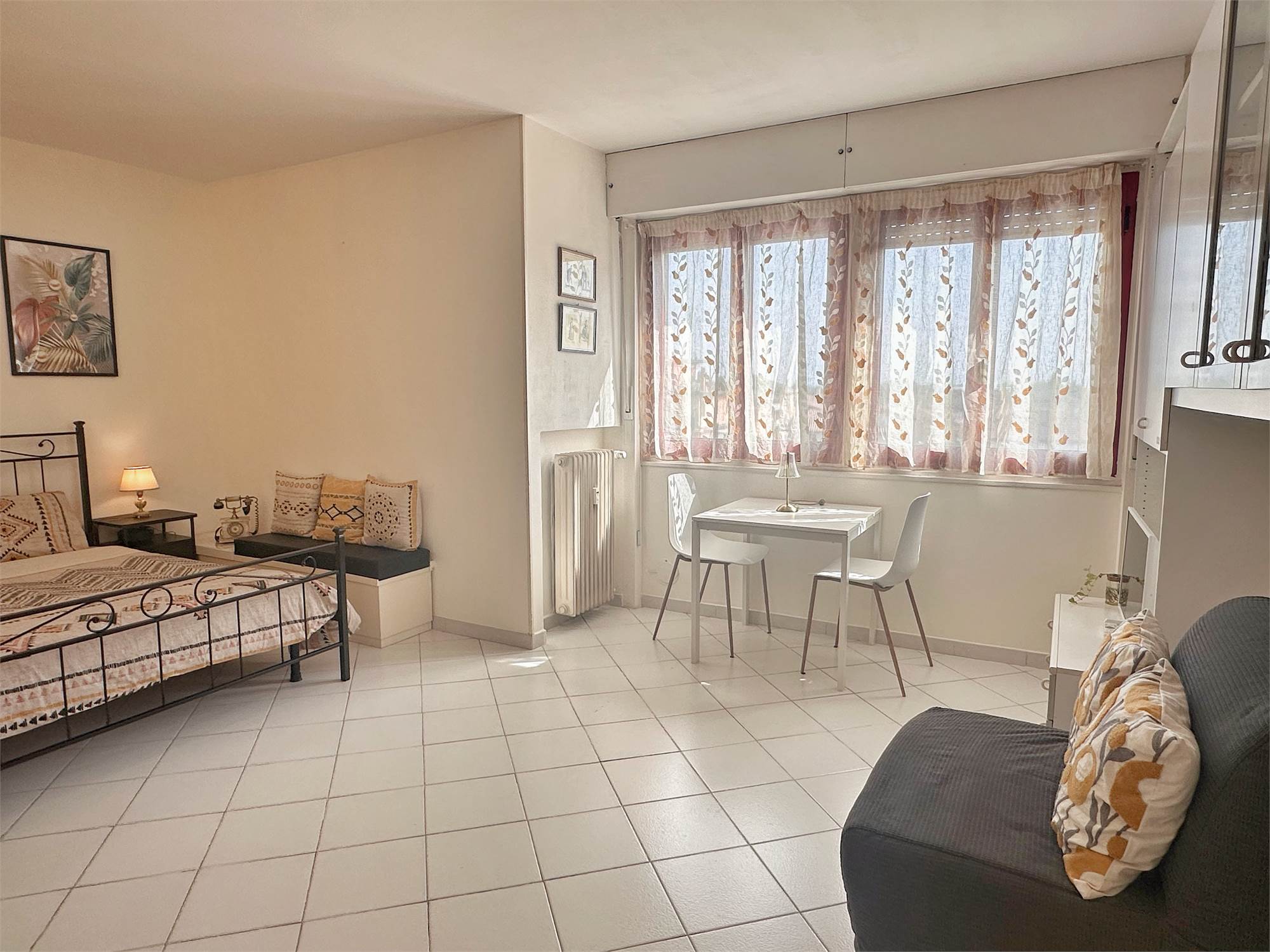 Secondo piano dotato di ascensore, si compone da ingresso con comoda armadiatura a muro, ampia zona living con angolo letto, cucinotto separato, bagno dotato di ogni comfort. Riammodernato negli anni, si presenta in ottimo stato di manutenzione, completo di arredamento e pronto da vivere. Ideale sia come prima abitazione che per chi cerca un immobile da mettere a reddito.